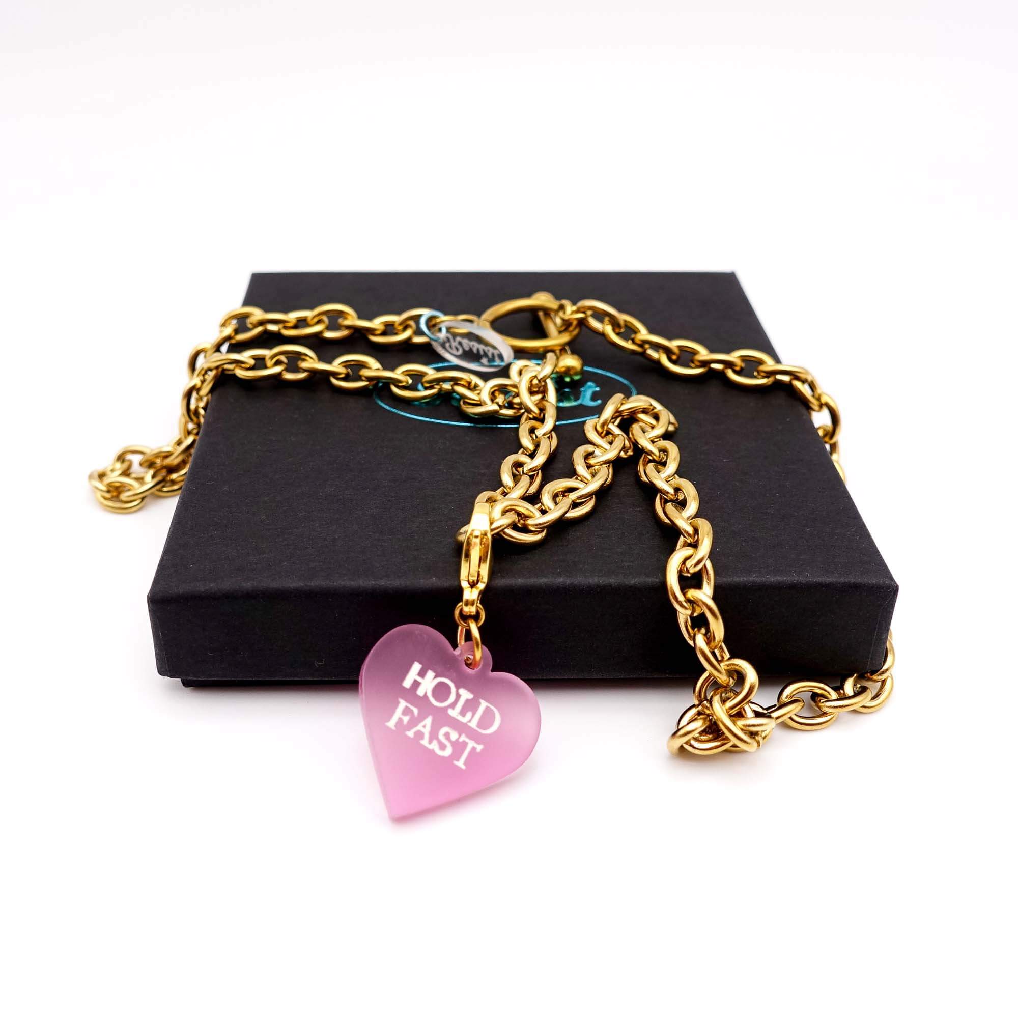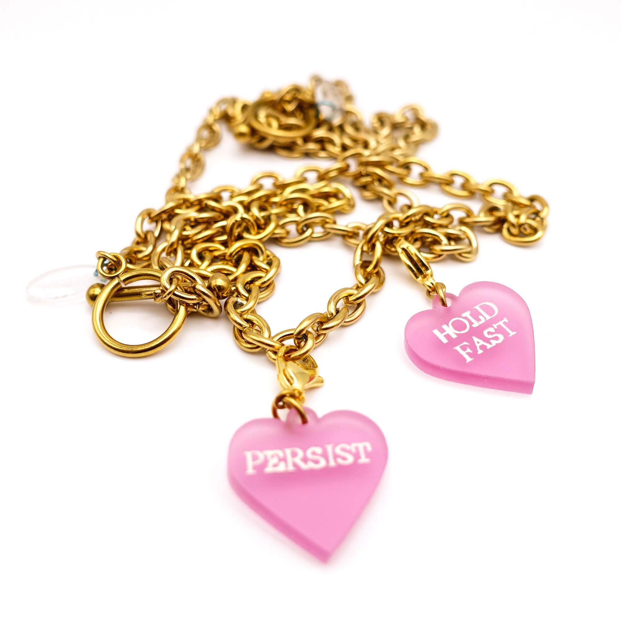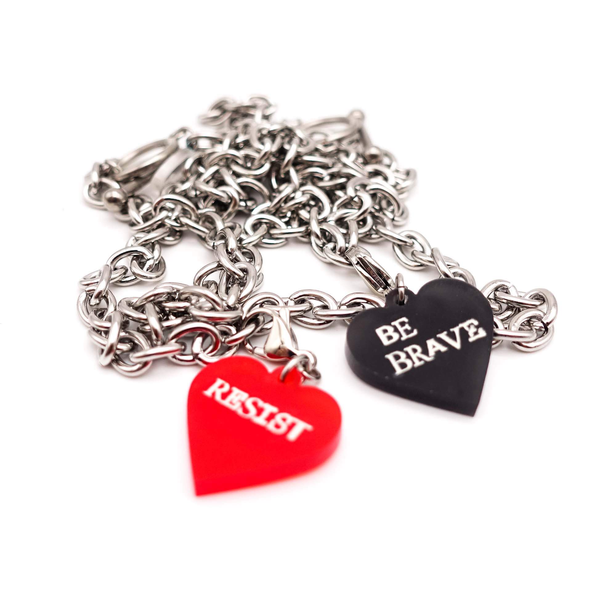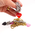 These stainless steel charm necklaces come in a choice of two lengths with three glow-in-the-dark heart charms to clip on and off to your heart's content!