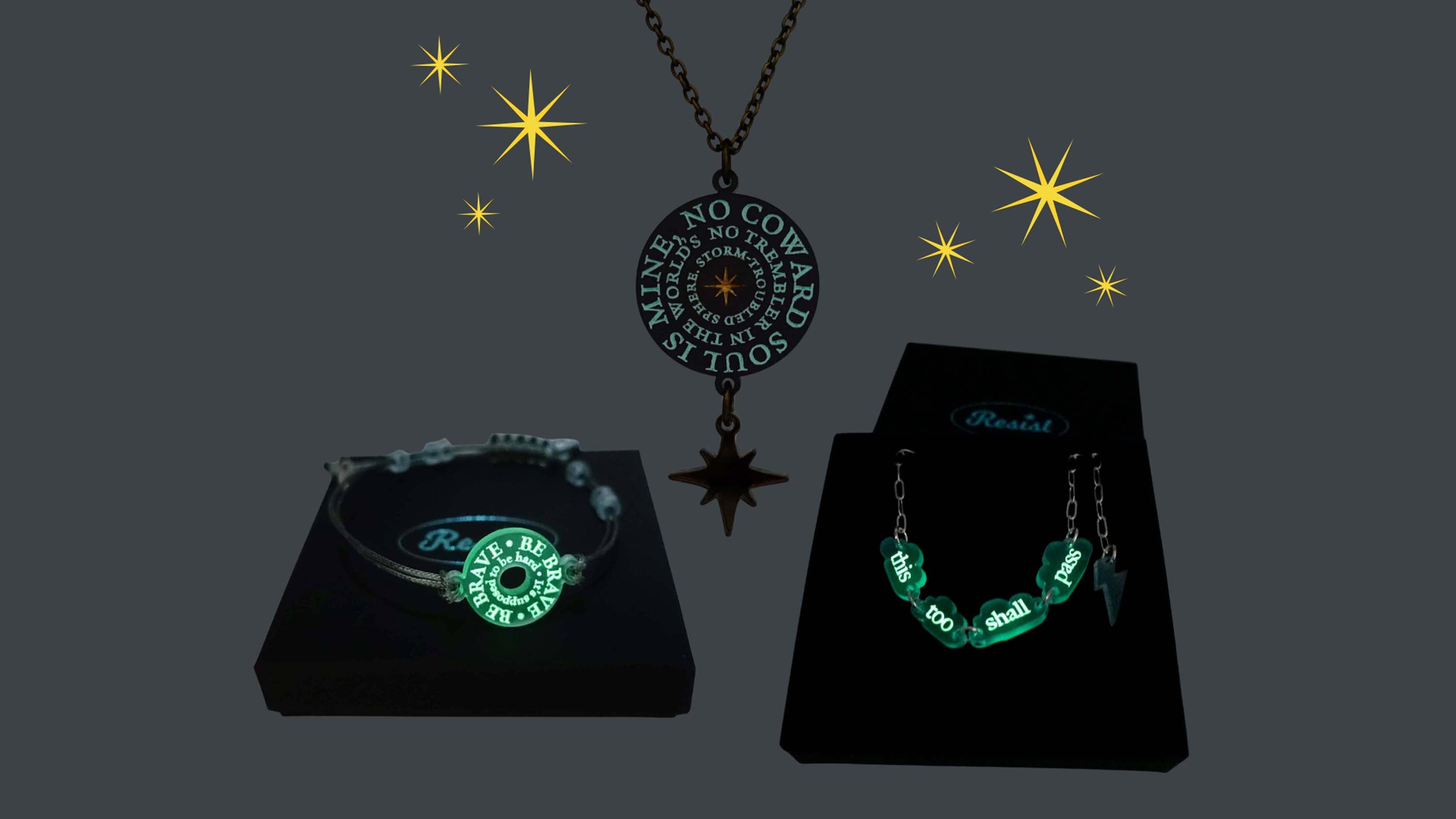 Wear and Resist was founded by Sarah Day in early 2017 as a way to channel her frustration and rage at the political climate into a creative pursuit that would raise money for women's charities. Her daughter, Eliza, is her inspiration, model and chain maker. Sarah designs and makes everything in her Oxfordshire studio, with a proportion of sales going to these charities..