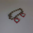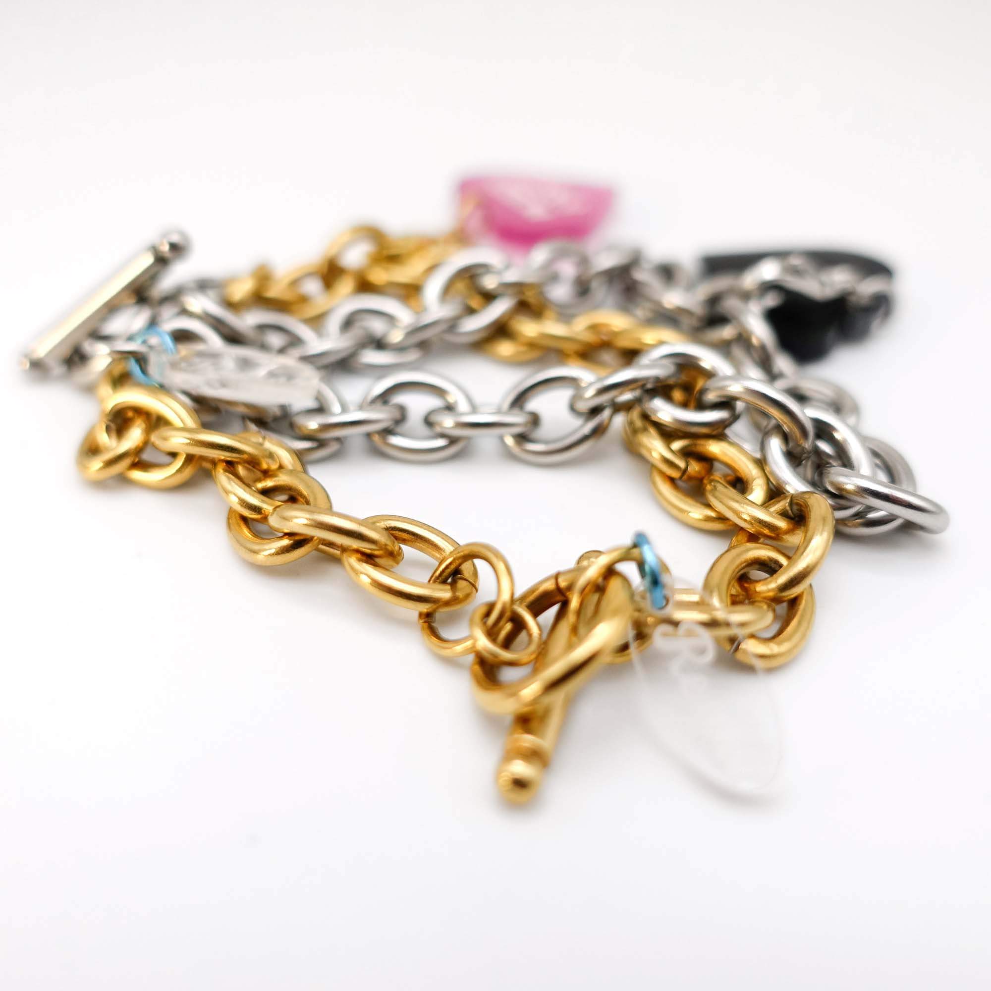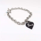 This chunky stainless steel charm bracelet will never leave your wrist! It comes with a choice of three glow-in-the-dark heart charms that clip on and off, so you can change them to suit your mood.